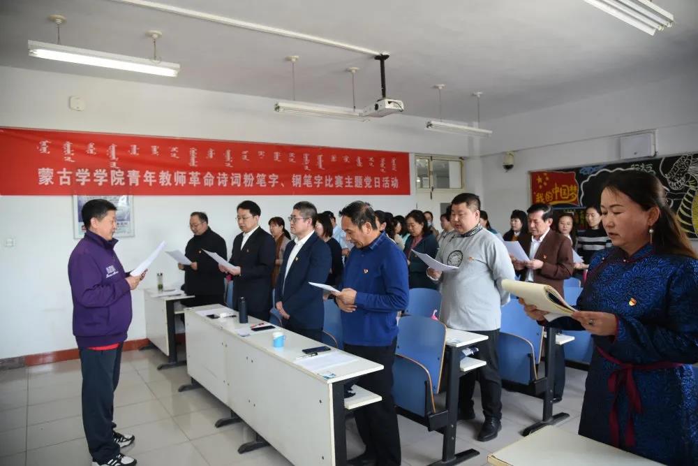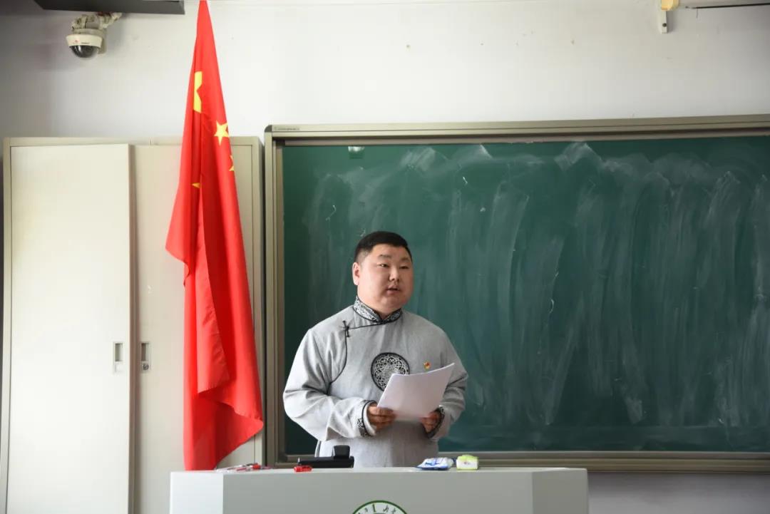 冠军获得者赵福财代表获奖青年教师发表了参赛感言。除此之外,额尔敦陶格陶副教授带领全体党员朗诵了毛泽东《七律·长征》,以此感悟共产党人的初心和使命。
