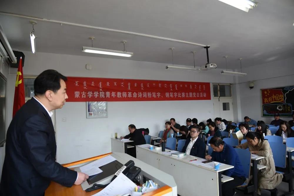 端正、规范、美观的字体是教师重要的基本功之一。为加强革命传统教育,促进青年教师专业素质发展,提高教师教学能力,pp电子游戏官网党委于2021年4月24日上午在校田家炳教育书院231教室组织全院40岁以下青年教师举行了“革命诗词粉笔字、钢笔字比赛”主题党日活动。校党委党史学习教育第一巡回指导组乾达门教授、pp电子游戏官网党委书记白宝成副研究员、院长满全教授、党委副书记、副院长乌日其木格副教授、副院长聚宝教授担任评委。本次比赛由pp电子游戏官网教工第一党支部和第二党支部联合主办,共18位青年教师参赛,由青年教师斯琴吐博士主持。