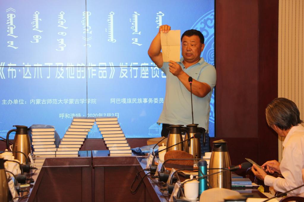 座谈会上,《作品》编辑整理者图门巴雅尔对编辑布·达木丁老师作品进行了介绍。随后青格乐图、策·朝鲁门、钦德木尼等专家学者发表观点,进行自由研讨。认为布·达木丁老师的学术作品总体来看,涉及蒙古语文研究方面的诸多问题,分析研究存在争议的问题上体现细致特点,不仅如此,还关注整个蒙古语文研究学科撰写了研究论文著作。即包括蒙古语基本词汇浅释,正字法与格的研究等内容,其中分量重且成就高,其中最具特点的是正字,语言规范方面的研究。最后布·达木丁老师的女儿阿拉坦其其格发表感言。