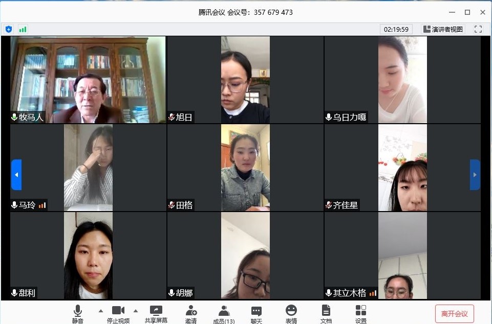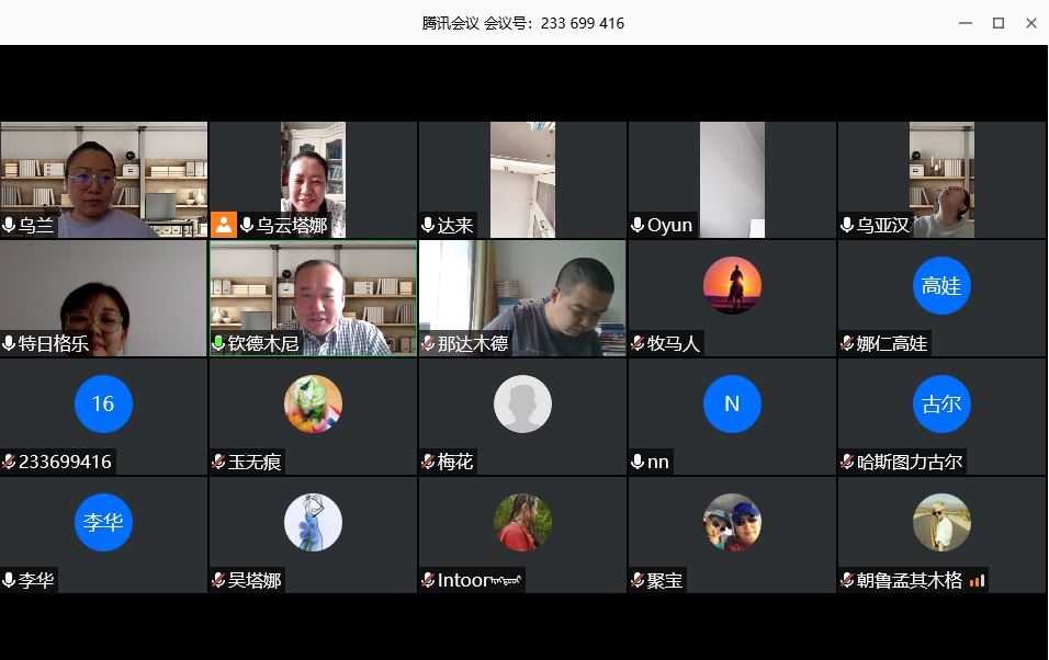5月12日上午8:00 —— 12:00,根据学校疫情防控期间毕业生相关工作要求,pp电子游戏官网蒙汉双语专业2020届本科毕业生进行在线论文答辩。上午8:00 —— 8:30,答辩委员会全体成员开会,由系主任乌云塔娜主持会议,会议上强调答辩工作的重要性与注意事项。