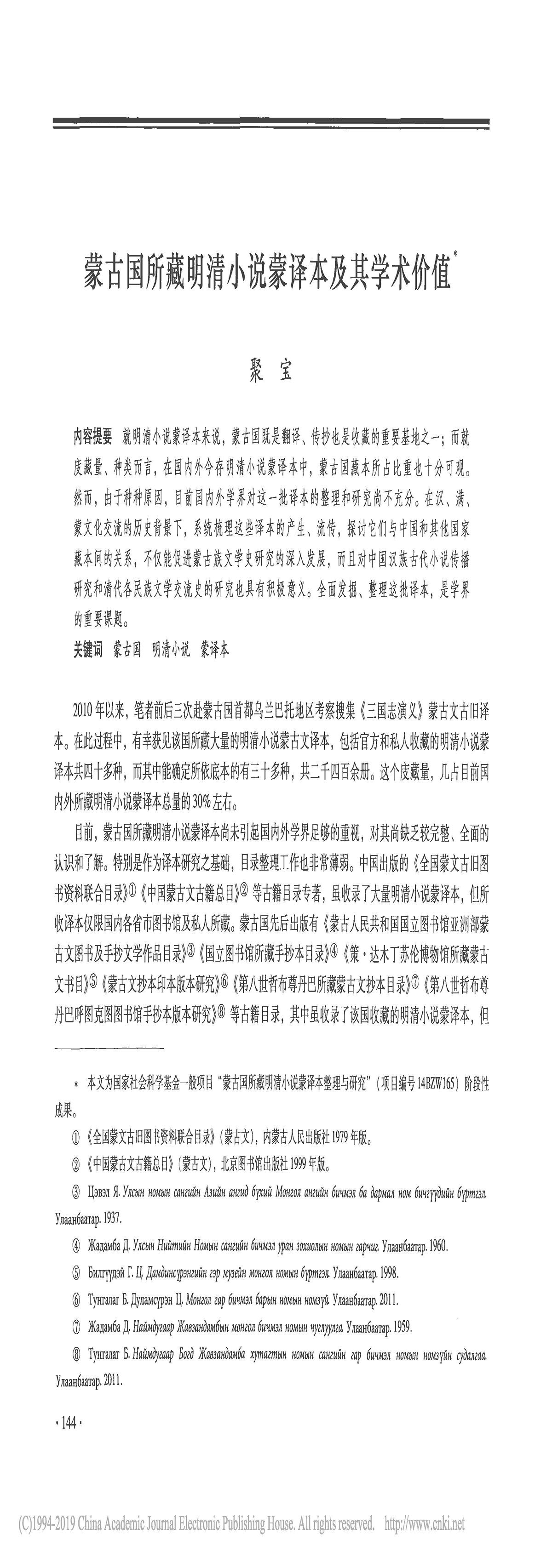 文学遗产:蒙古国所藏明清小说蒙译本及其学术价值_聚宝